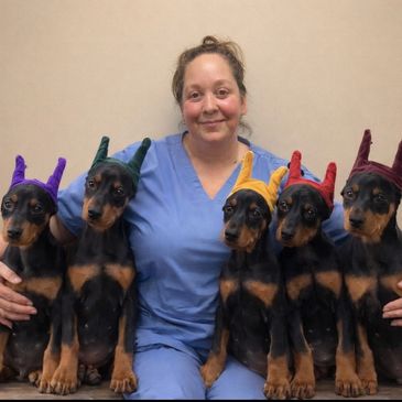Rachel joined our team in 2021. She attended both professional grooming school and veterinary technician school and has worked in both industries throughout her life. Before transitioning into veterinary medicine full time, she traveled and competitively groomed for several years. She has also professionally taught within the grooming industry. In her free time, she enjoys showing dogs, professionally grooming show dogs, spending time with her family and dogs and watching her children build their careers in the animal and agricultural industries. Rachel’s favorite area of veterinary medicine is reproduction, and she has a strong passion for custom ear cropping across various dog breeds.